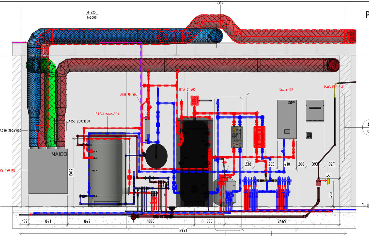 Privat house Kyiv, Ukraine Location 120 m2 Area 2021 Year About project Location: Ukraine, Kyiv Total area: 120 m2 Year of implementation: 2021 Complex of works: HVAC, plumbing • Heating/air conditioning equipment: Heat pump «Mitsubishi Electric» ZUBADAN PUHZ-SHW112 • Heating equipment: Flamco, Willo, Kan Steel • Ventilation equipment: Maico WS 470 • Heat distribution system: REHAU heat floor + icon master • Air distribution system: TROXX slot diffusers • Air distribution system: TROXX Do you need ANY help? or want to get a consultation? CONTACT US