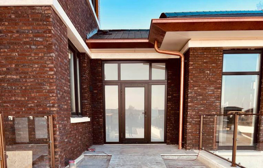 • Result: Design work on the development of the facade was completed and work was carried out on the installation of facade bricks, windows, natural stone outside and inside the house